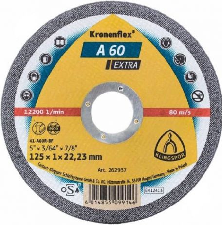 Круг відрізний EXTRA A60 EX GER 125×1.0x22.2 мм, Klingspor