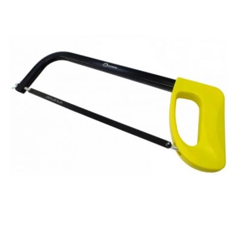 Ножівка по металу. Сталева рама має стійке антикорозійне покриття. Передбачено регулювання натягу полотна. Монтажне положення полотна 90 °. Оснащена закритою пластмасовою ручкою ергономічної форми. Колір ручки – жовтий