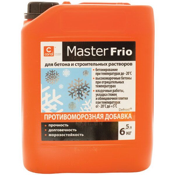 Пластифікатор – протиморозна добавка Coral MasterFrio для бетонних і розчинних сумішей. Володіє комбінованим протиморозним, що прискорює, пластифікуючим дією.