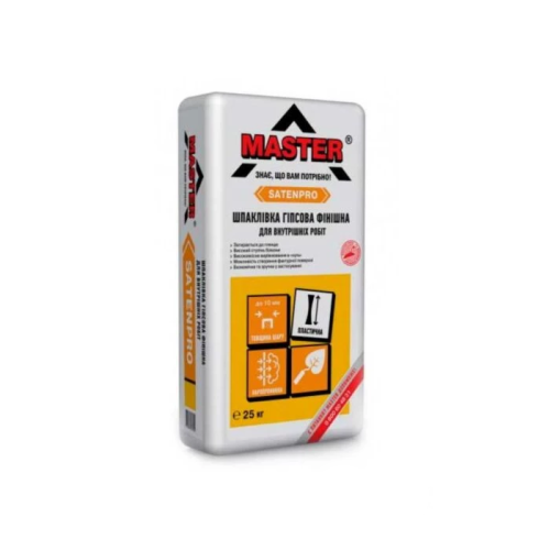 Шпаклівка під чистове MASTER SATENPRO призначена для внутрішньої обробки поверхонь стін і стель приміщень з нормальною вологістю повітря. MASTER SATENPRO використовують для додання оштукатурених поверхнях ідеальної рівності. Застосовується для кінцевого вирівнювання під подальшу обклеювання шпалерами або під фарбування.